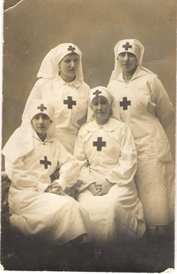 Dona Ana Guedes primeira em cima na fotografia (sentido da esquerda para a direita) com as suas Enfermeiras Voluntárias